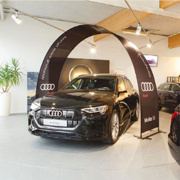 Audi, renowned for its sleek designs and innovative technology, has embraced Bannerbow’s unique branding solutions to enhance their showroom aesthetics throughout Europe. With a keen eye on sophistication, these portable branding arches seamlessly integrate with Audi’s interiors, providing a contemporary touch to the ambiance. Not only do they echo Audi’s commitment to quality, but they also ensure a consistent brand experience for visitors.